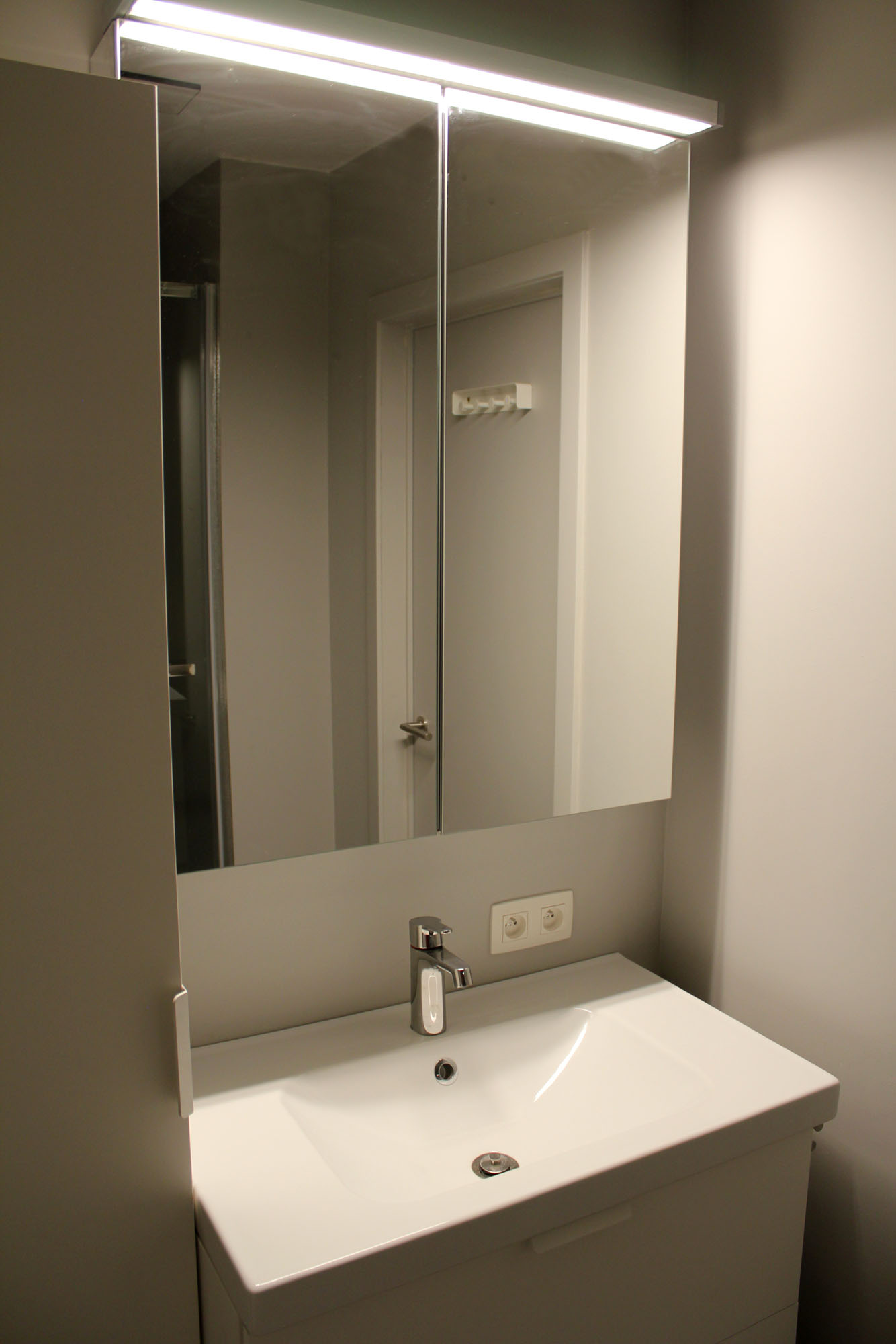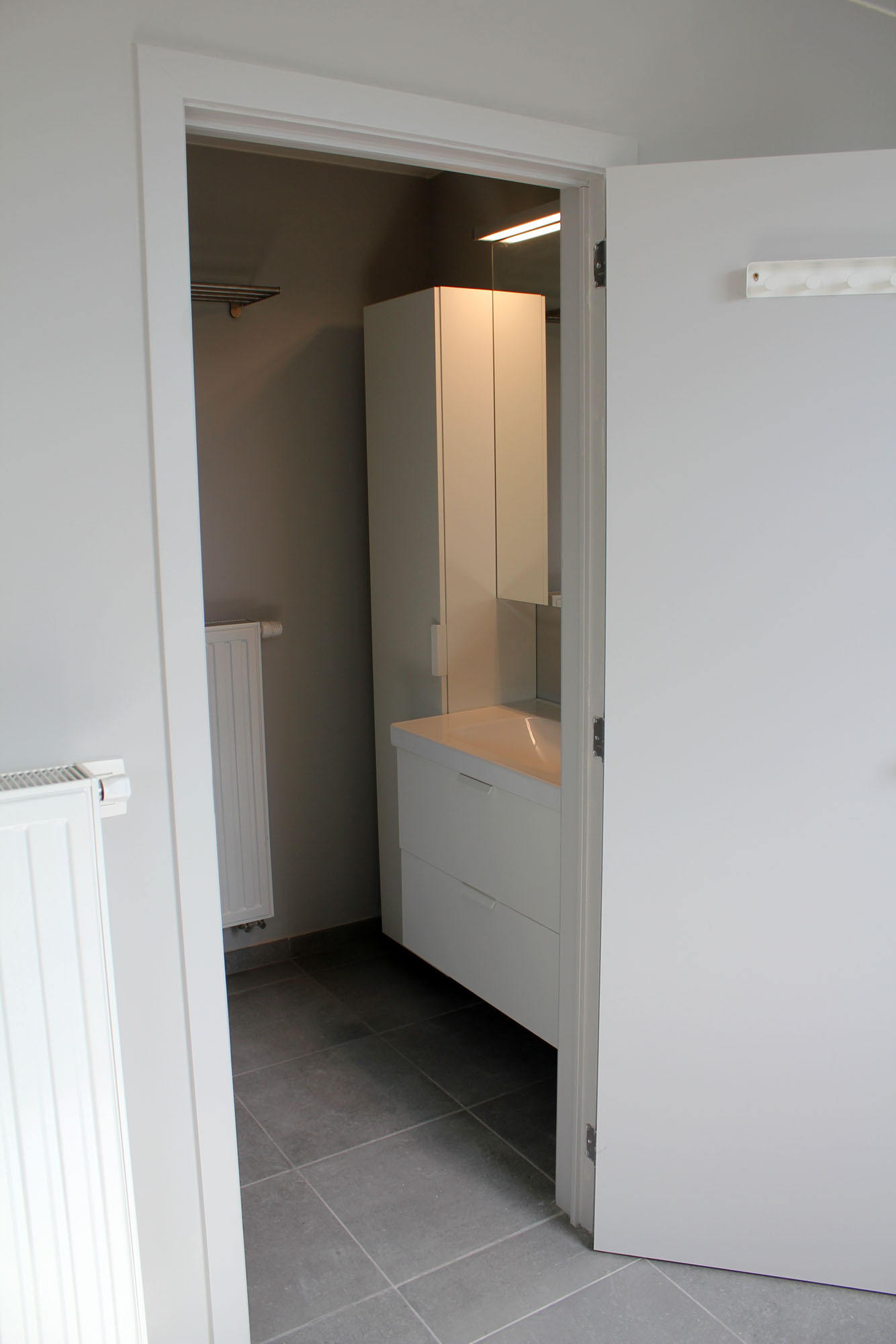 | Privé badkamer met wastafel en inloopdouche |